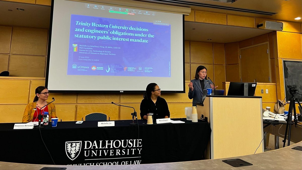 Hello! I hope you are doing well. My name is Michelle. I use she/they pronouns (elle/iel en français), identify as a Queer and Asian-Canadian millennial, and am a settler living and working on the traditional territory of the Algonquin Anishinaabe peoples. I graduated magna cum laude from the English Common Law Program at the University of Ottawa in 2023 and received the Common Law Section Dean’s Award (shared with the amazing Matthew Tai). I am a licensed professional engineer (P.Eng) in Ontario and worked for various national and international engineering firms prior to law school. I will be articling at Ecojustice from October 2023 to May 2024 while continuing my work as a researcher/PhD candidate, EDI speaker/trainer, board member of the Ontario engineering regulator, and various other volunteer service roles.